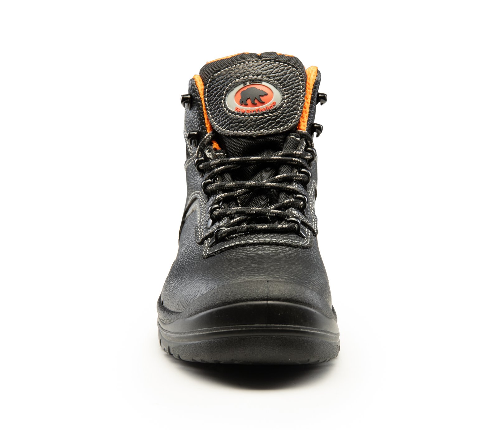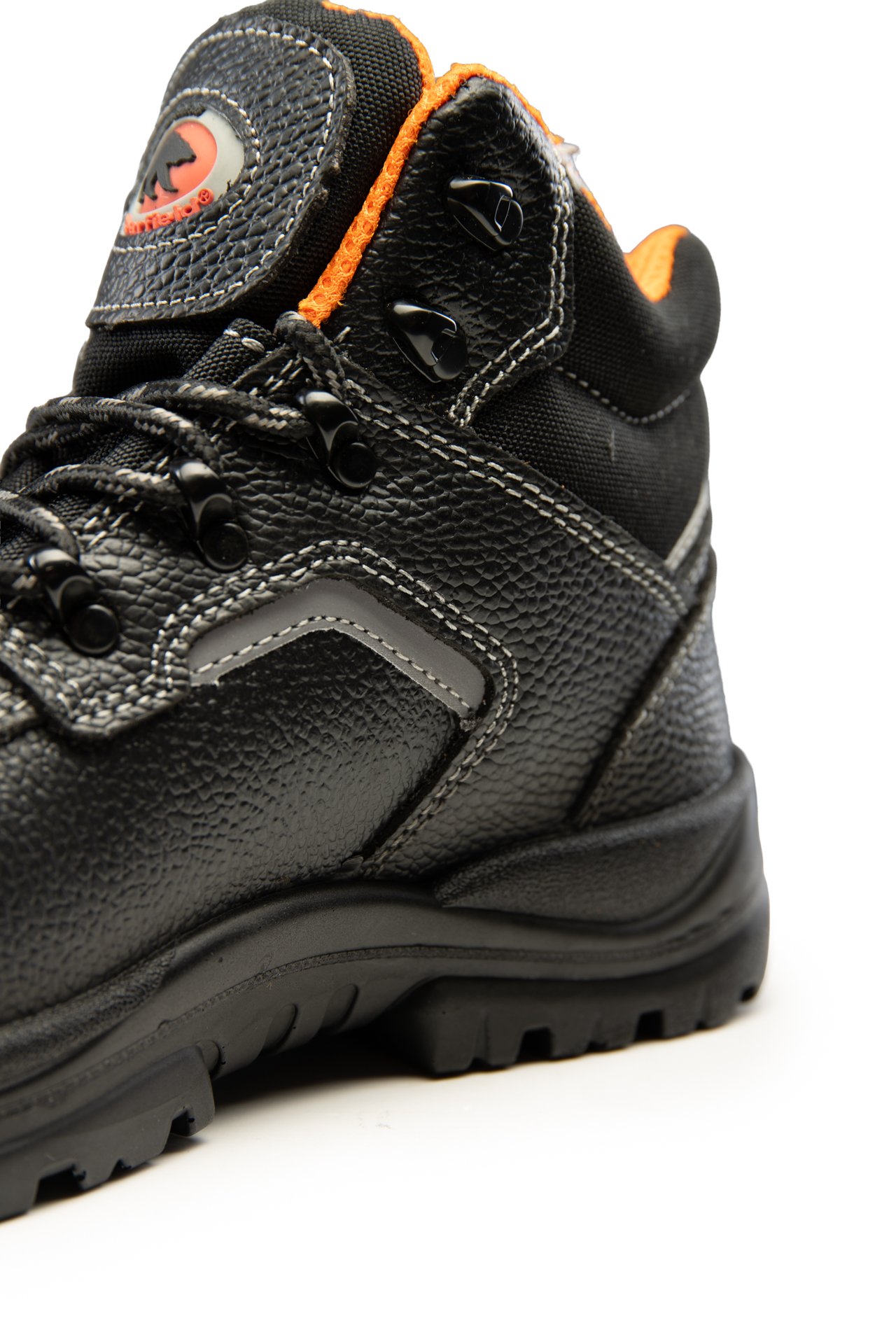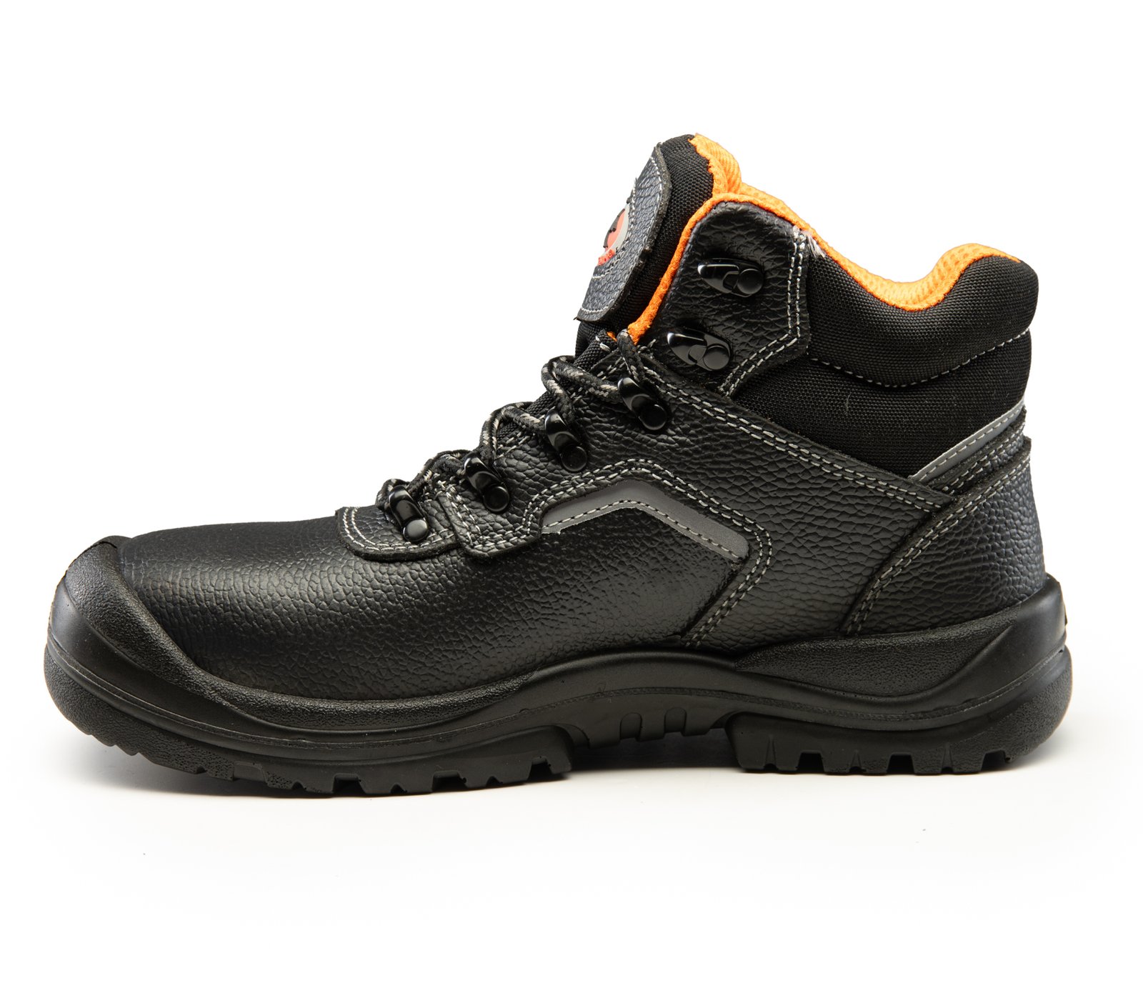 Kulkšnį dengiantys darbo batai, pagaminti iš skeltinės odos (1,6–1,8 mm) su padidintu atsparumu vandeniui – neįgeria drėgmės iki 60 minučių. Juodos spalvos aulai su kontrastingais baltais siūlais ir atšvaitiniais elementais pagerina matomumą. Minkštas, storas liežuvėlis užtikrina patogų prigludimą ir apsaugo nuo purvo.