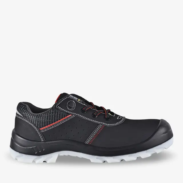 VALLIS – tai žemo aulo apsauginiai batai, sukurti maksimaliai apsaugai ir komfortui. Metal-free konstrukcija užtikrina lengvumą ir leidžia avėti juos dirbant aplinkoje, kur naudojami metalo detektoriai. ESD sertifikatas apsaugo nuo elektrostatinių iškrovų, o neslystantis SR padas garantuoja saugų žingsnį ant plieno, keramikos ar šlapių paviršių. Vandeniui atsparus viršus apsaugo nuo drėgmės, nežymintis padas nepalieka žymių ant grindų, o atspindinti kulno dalis padidina saugumą tamsoje. Pradūrimui atsparus vidpadis, kvėpuojantis dizainas ir ortopedinis pritaikymas – viskas, ko reikia saugiam ir patogiam darbui.