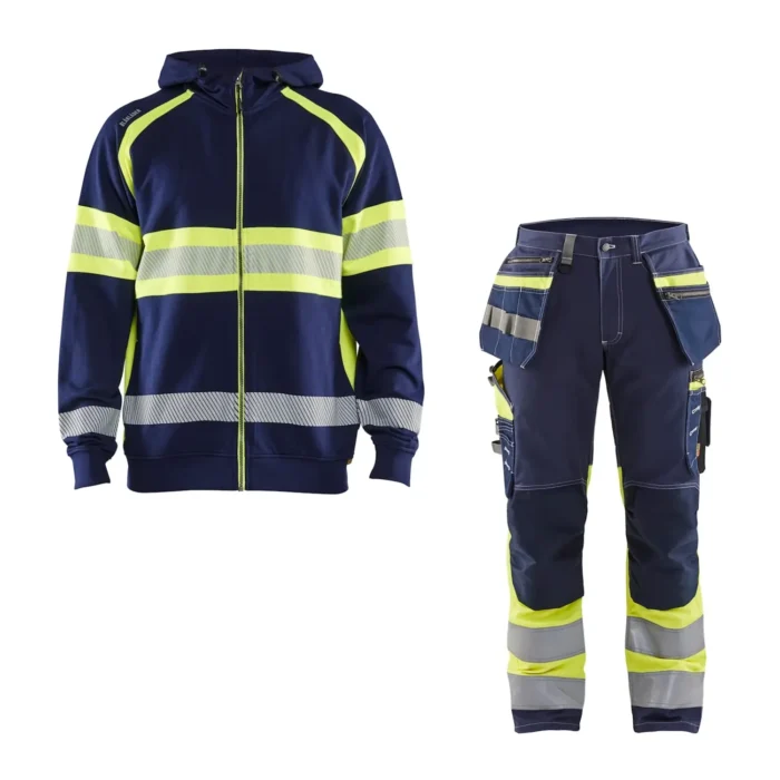 Signalinis darbo aprangos komplektas – džemperis su gobtuvu ir kelnės su tampriais intarpais