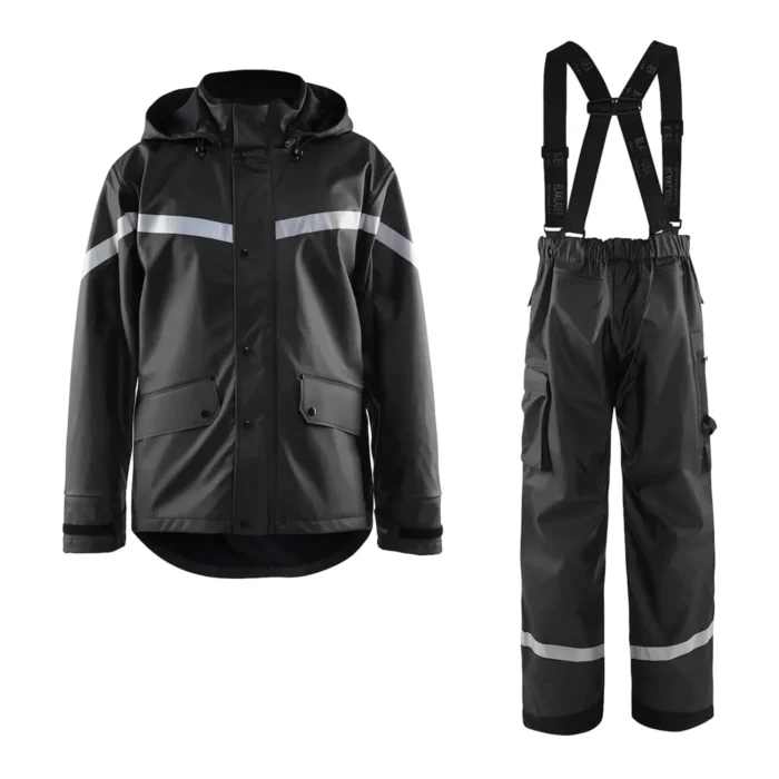 Lietaus darbo aprangos komplektas – striukė ir kelnės su petnešomis