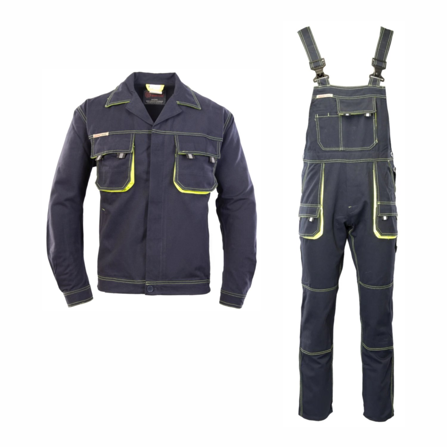Patvarus ir patogus darbo aprangos komplektas SPARK, sudarytas iš darbo švarko ir puskombinezonio su petnešomis, skirtas intensyviam kasdieniam darbui. Komplektas pagamintas iš aukštos kokybės medvilnės audinio, pasižymi tvirta konstrukcija ir funkcionaliomis detalėmis, užtikrinančiomis komfortą bei ilgaamžiškumą.
