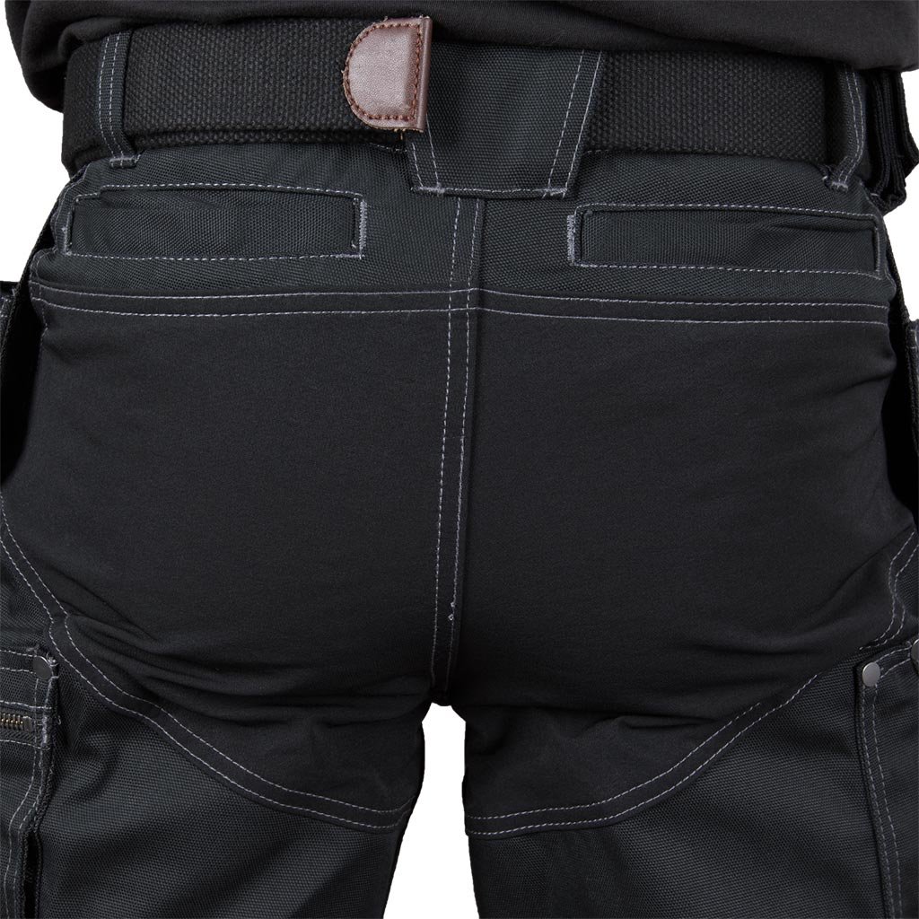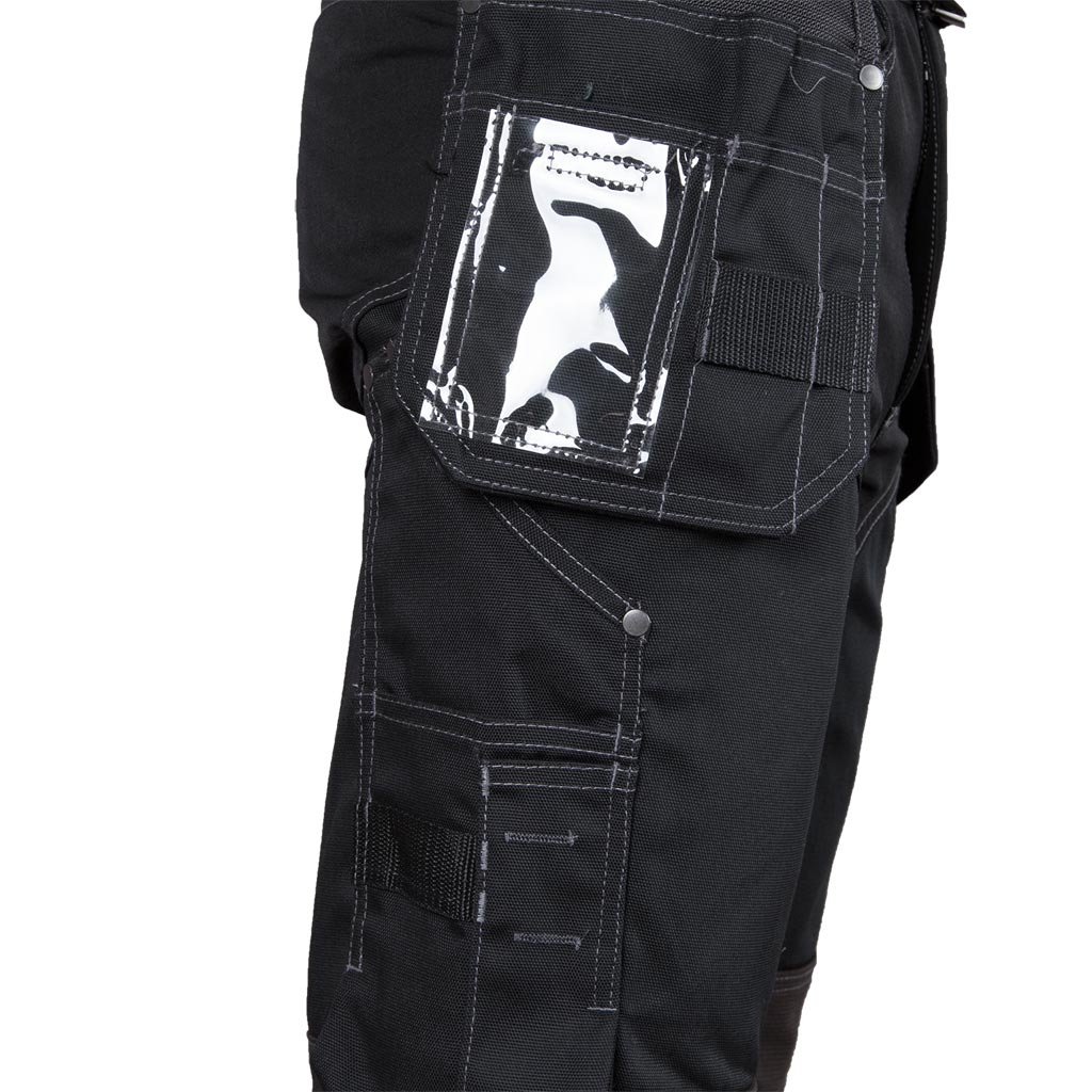 - Kojų kišenės: dvi dvigubos kišenės, viena išilgine dviguba kišenė su kilpa ir siaura papildoma kišene įrankiams