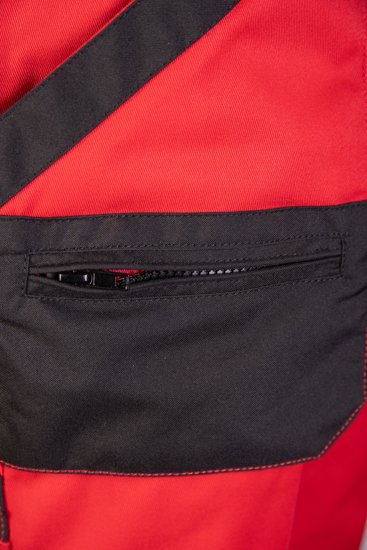 - Kišenės: kišenė su užtrauktuku, kišenė mobiliajam telefonui, dvi kišenės rašikliams, kišenė matavimo juostai, ergonominės kišenės kelių apsaugoms iš OXFORD audinio