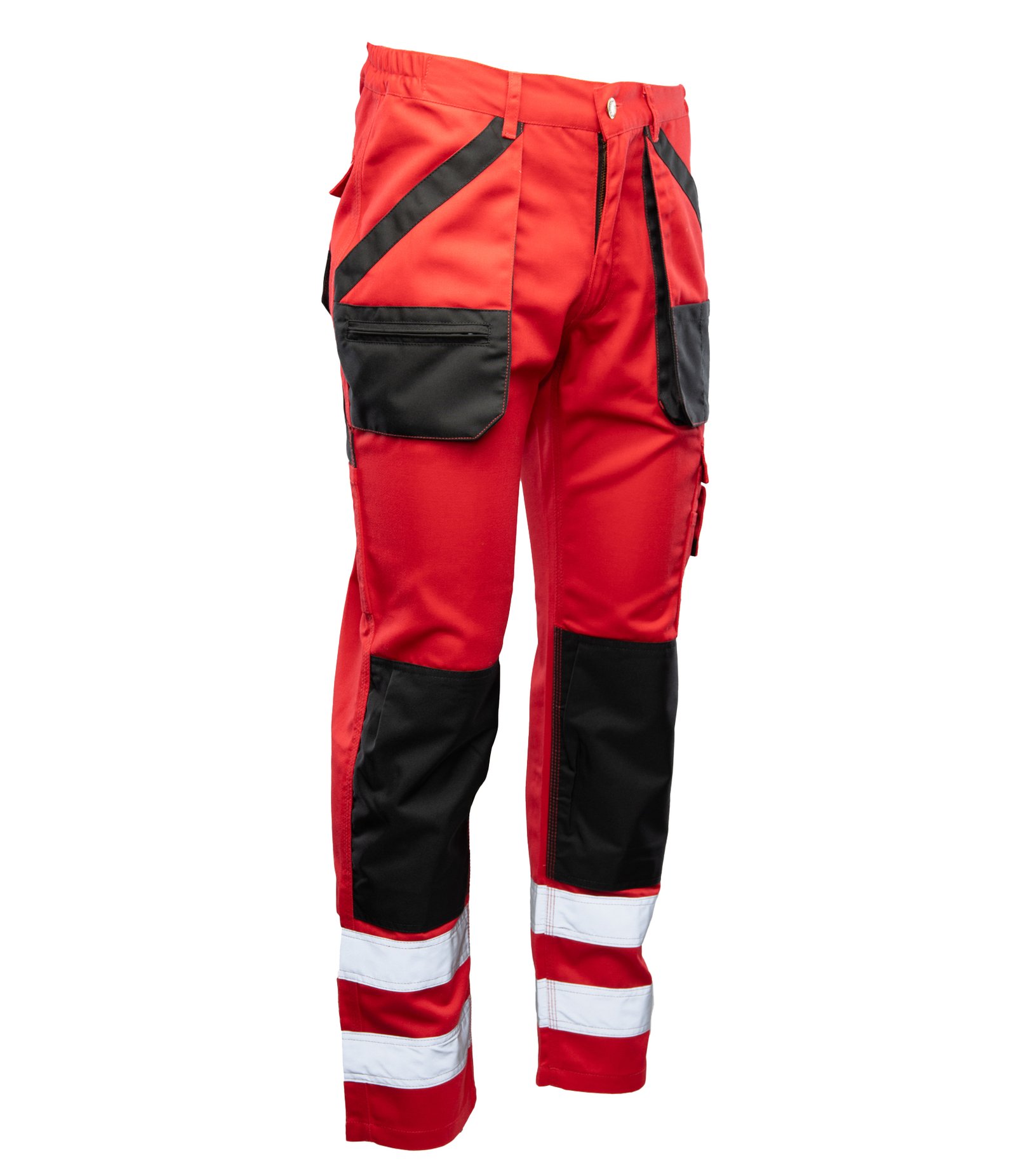 Darbo kelnės, skirtos patogiam ir intensyviam darbui aplinkoje, kur reikalingas patvarumas, funkcionalumas ir matomumas. Kelnės pagamintos iš aukštos kokybės poliesterio ir medvilnės mišinio, kuris užtikrina spalvos ir dydžio stabilumą net po daugkartinio skalbimo. Konstrukcija sutvirtinta dvigubomis ir trigubomis siūlėmis, o vietose, labiausiai veikiamose tempimo ir plyšimo, panaudotas didesnis užtvirtinimų (lockstitches) skaičius. Galinė dalis papildomai sustiprinta atsparumui dilimui, o spalviniai intarpai suteikia praktišką ir modernią išvaizdą. Ergonomiškai suformuotos kišenės kelių apsaugoms iš OXFORD audinio didina komfortą dirbant klūpint, o atšvaitinės 5 cm pločio juostos pagerina matomumą prastesnėmis apšvietimo sąlygomis.