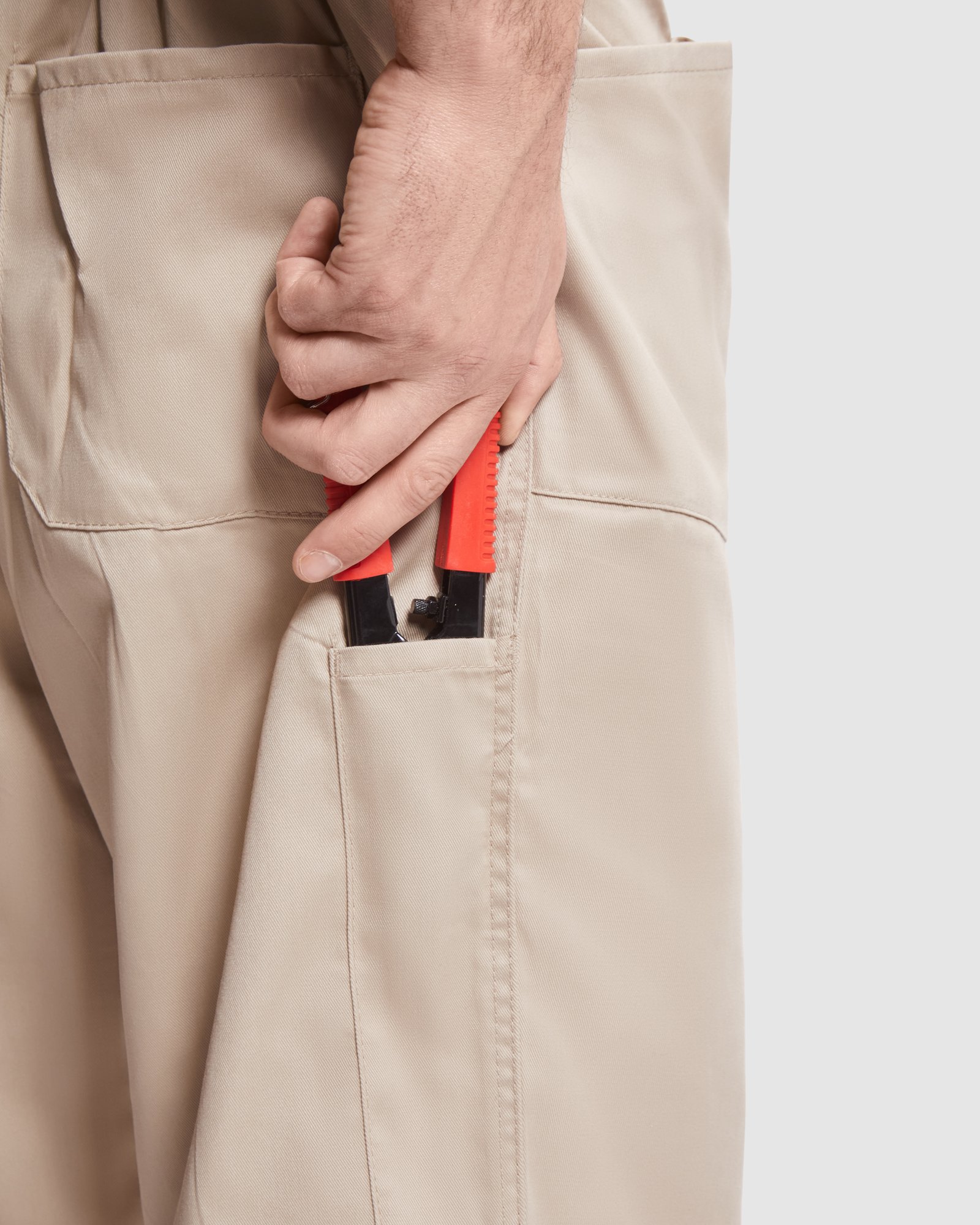 Darbo kombinezonas su ilga raglano tipo rankove, sukurtas patogiam ir funkcionaliam darbui. Dviejų krypčių priekinis užtrauktukas, tampri juosmens dalis ir megzti rankogaliai suteikia komforto ir laisvę judėti. Papildomos kišenės leidžia patogiai susidėti darbo įrankius ir smulkmenas.