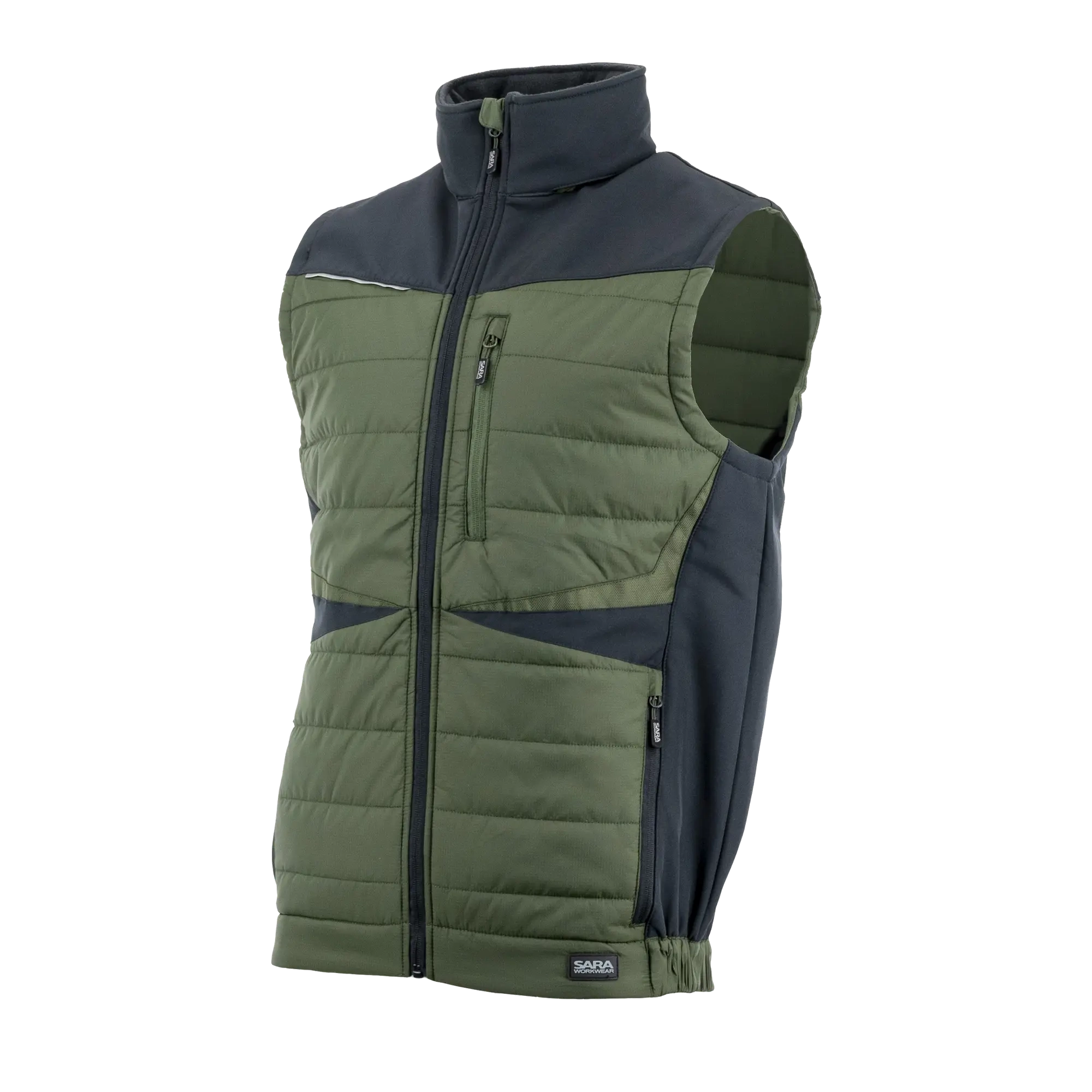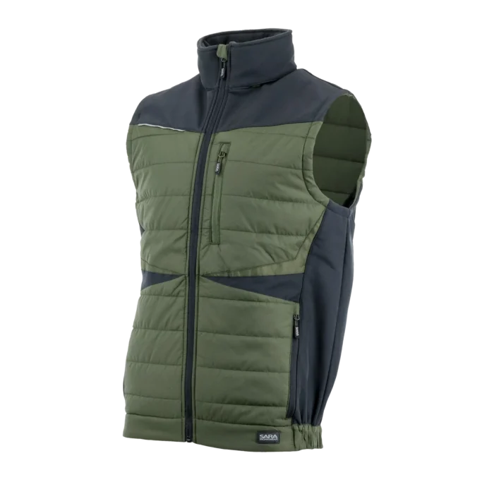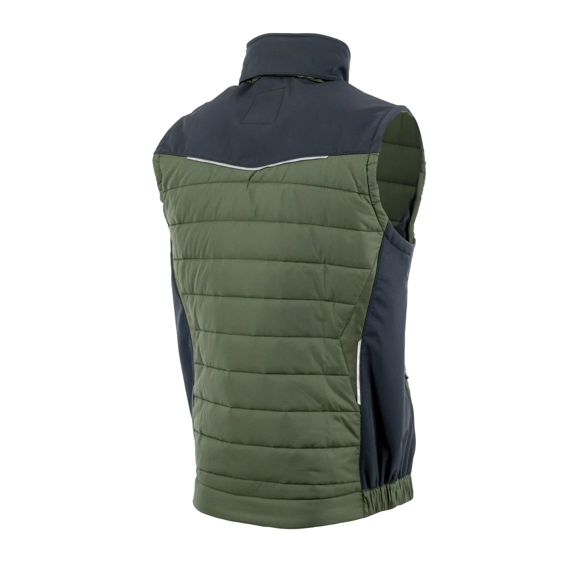 Patogi ir funkcionali darbo liemenė, skirta dėvėti visais metų laikais tiek darbo aplinkoje, tiek lauke. Modelis pasižymi modernia dygsniuota struktūra, o šonų ir pečių srityse integruoti softshell intarpai suteikia papildomo elastingumo ir judėjimo laisvės. Liemenė užsegama pilno ilgio užtrauktuku su smakrą saugančia apsauga, o apykaklėje paslėptas gobtuvas leidžia greitai prisitaikyti prie besikeičiančių oro sąlygų. Reguliuojamas liemuo su elastiniais intarpais nugaros dalyje užtikrina gerą prigludimą, o praktiškos kišenės – dvi šoninės, krūtinės ir vidinė – leidžia patogiai laikyti kasdienius daiktus. Nedidelės atšvaitinės detalės pagerina matomumą, o juodos ir fluorescencinės geltonos spalvos derinys suteikia sportišką, profesionalią išvaizdą.