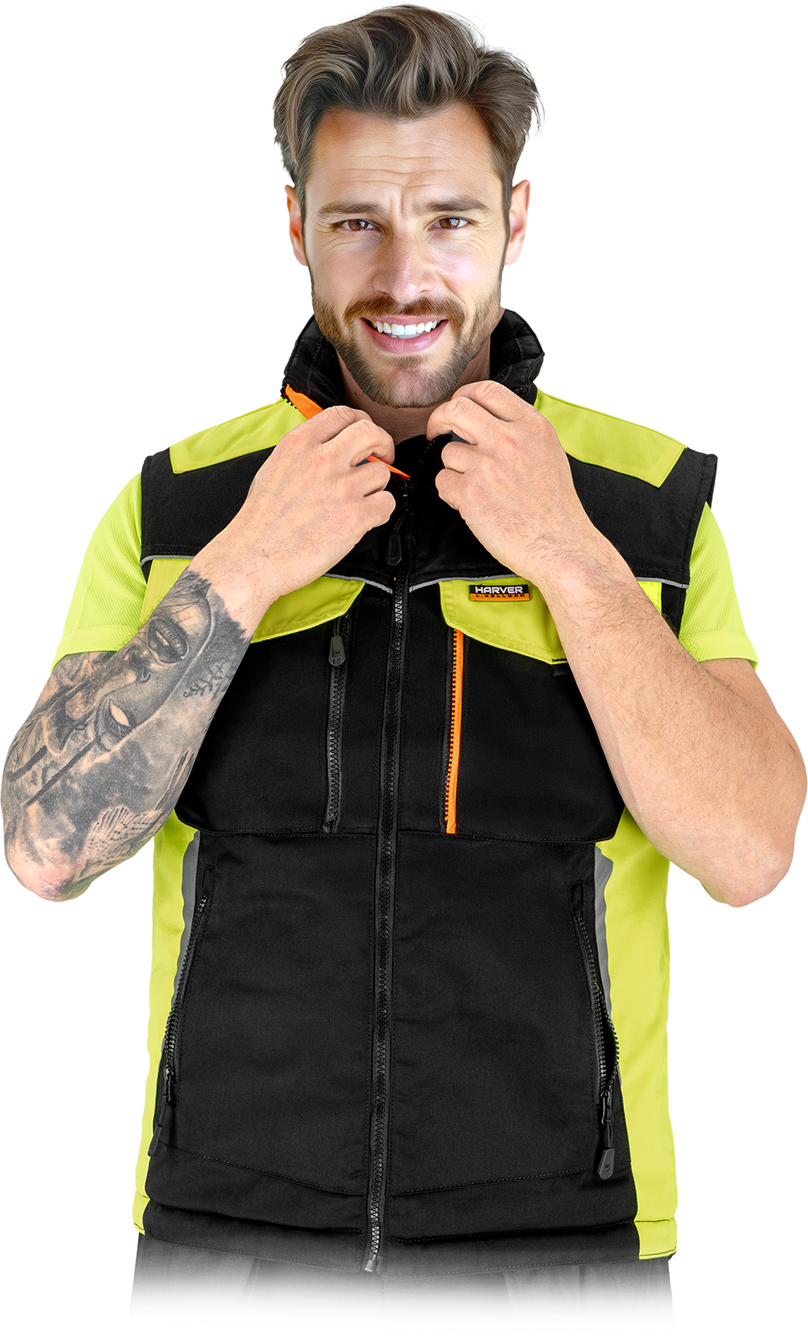 Vyriška pašiltinta darbo liemenė, pasiūta iš 80 % poliesterio ir 20 % medvilnės audinio (240 g/m²) su kontrastiniais intarpais. Vidus su pamušalu iš poliesterio (150 g/m²) ir paminkštintu fliso pamušalu, užtikrinančiu šilumą ir komfortą šaltomis darbo sąlygomis.