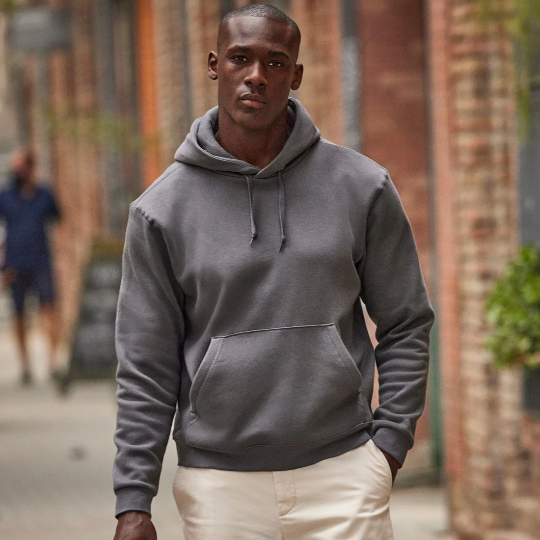 Modernus ir patogus unisex džemperis su kapišonu, pagamintas iš šukuotos žiedu verptos medvilnės ir perdirbto poliesterio. Minkštas, šiltas audinys užtikrina komfortą bei ilgaamžiškumą. Dviejų sluoksnių kapišonas su raišteliu ir metalinėmis akutėmis, priekyje – erdvi kengūros tipo kišenė su sutvirtintomis siūlėmis. Rankogaliai ir apačia – elastingo 1×1 tampriaus mezginio su elastanu.