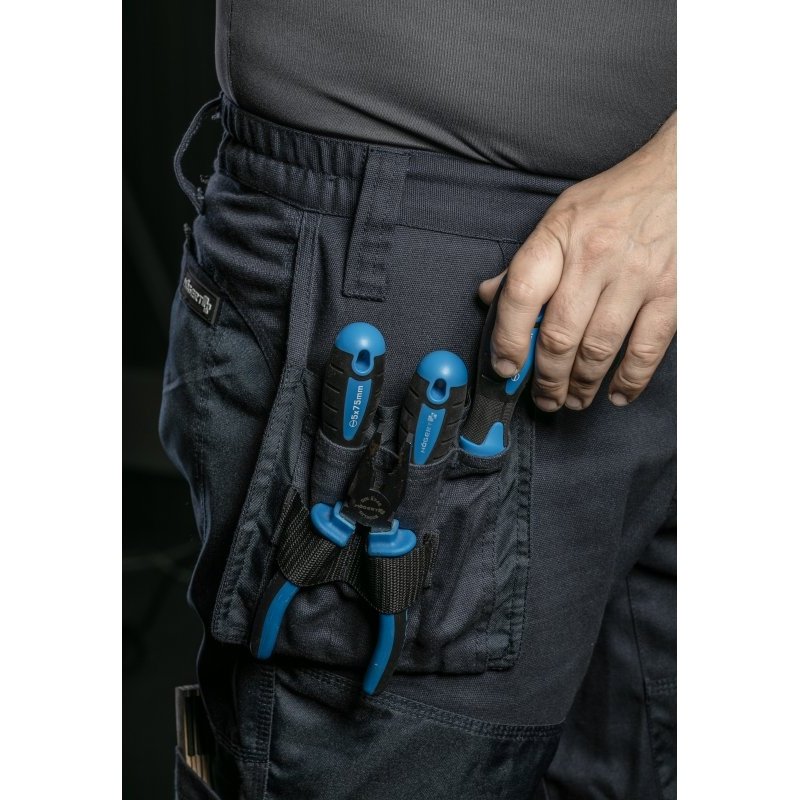 Šiuolaikiškos darbo kelnės su kabančiomis kišenėmis, suteikiančios daug vietos įrankiams ir smulkiems daiktams laikyti. Pagamintos iš patvaraus canvas audinio su OXFORD 600D sutvirtinimais, jos užtikrina komfortą, apsaugą ir ilgaamžiškumą bet kokioje darbo pozicijoje.