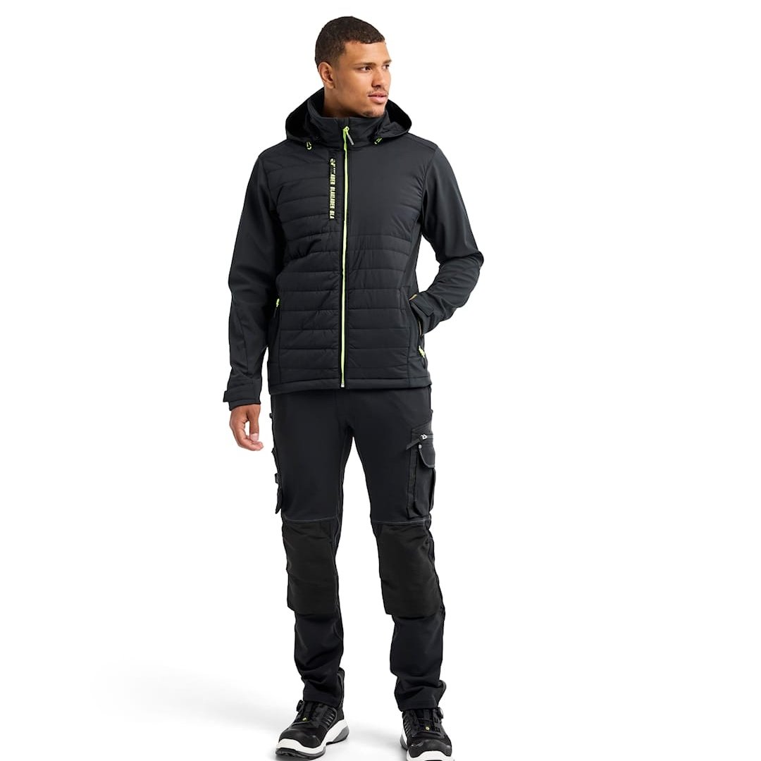 Hibridinė darbo striukė – universali ir moderni striukė, sujungianti šilumą, komfortą ir funkcionalumą. Modelis išsiskiria šiltai dygsniuota krūtinės ir nugaros dalimi, kuri efektyviai saugo nuo šalčio, o rankovės, šoninės dalys ir gobtuvas pagaminti iš elastingo, vėjui ir vandeniui atsparaus softshell audinio. Toks derinys užtikrina judėjimo laisvę ir patogumą tiek darbo metu, tiek laisvalaikiu. Nuimamas, reguliuojamas gobtuvas ir praktiškos kišenės suteikia papildomo funkcionalumo kasdieniam naudojimui.