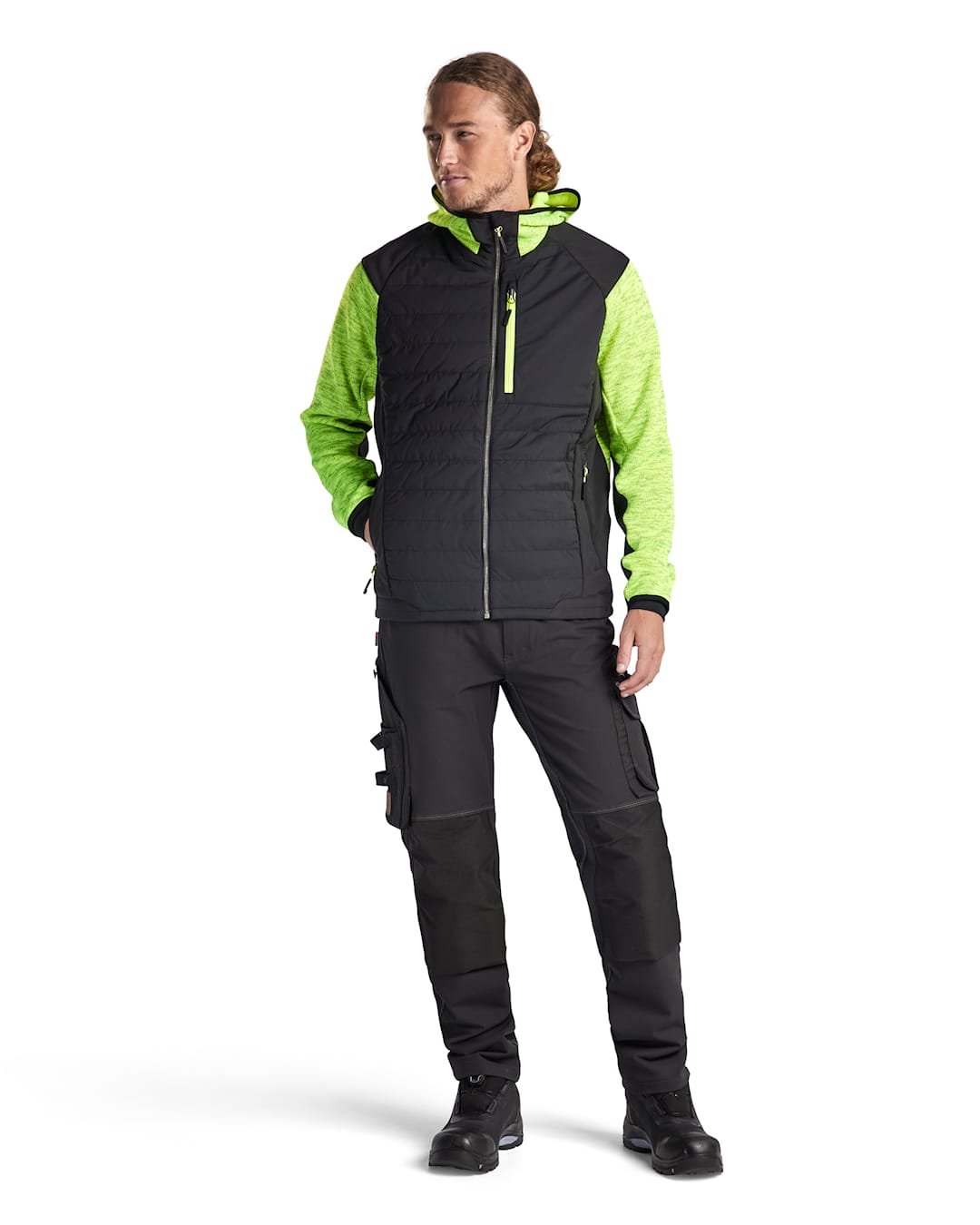 Kombinuoto audinio pašiltintas darbo džemperis – patogus ir šiltas džemperis, skirtas darbui vėsesnėje aplinkoje. Priekinė, nugaros ir dalis gobtuvo zonų yra lengvai, bet efektyviai pašiltintos, o pečių, rankovių ir šonų srityse naudojama softshell tipo medžiaga suteikia didesnę judėjimo laisvę ir komfortą. Dėl savo konstrukcijos modelis puikiai tinka tiek kaip viršutinis sluoksnis, tiek kaip šiltesnis džemperis po striuke. Personalizavimas galimas tik siuvinėjimo būdu.