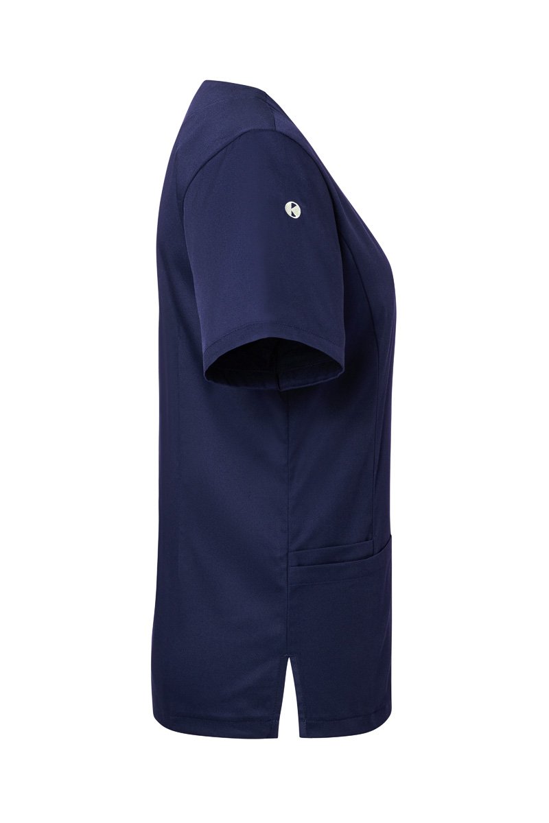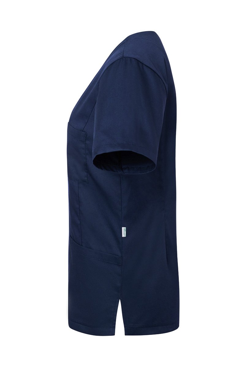 Funkcionali ir tvari moteriška tunika, pasiūta iš lengvo twill audinio, kurio sudėtyje – 65 % perdirbtas poliesteris ir 35 % medvilnė (150 g/m²). Audinys atsparus blukimui, lengvai prižiūrimas ir draugiškas aplinkai, o itin lengva medžiaga suteikia komfortą visai darbo dienai. Puikiai tinka medicinos, slaugos, gerovės, kosmetologijos, valymo ir kitoms profesinėms sritims.