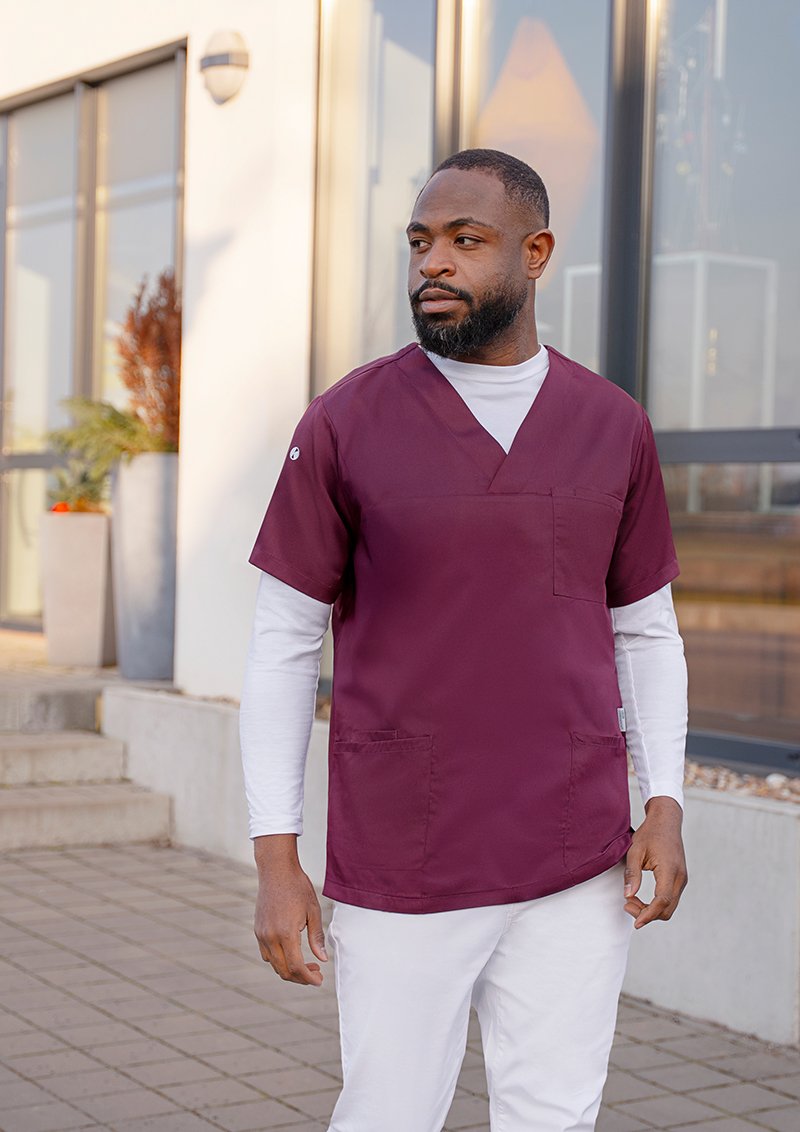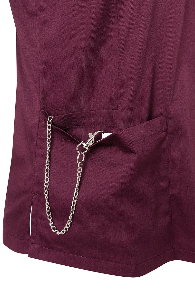 Tunika turi patogią V formos iškirptę, tiesų siluetą ir trumpas rankoves, užtikrinančias komfortą bei judėjimo laisvę. Dvi erdvios šoninės kišenės papildytos paslėpta vidine kišene, o kairėje pusėje yra krūtinės kišenė su rašiklio skyreliu. Šoninėje kišenėje įsiūtas kilpukas leidžia pritvirtinti raktus ar ID laikiklį. Audinys skalbiamas iki 95 °C, todėl užtikrinamas maksimalus švaros lygis.