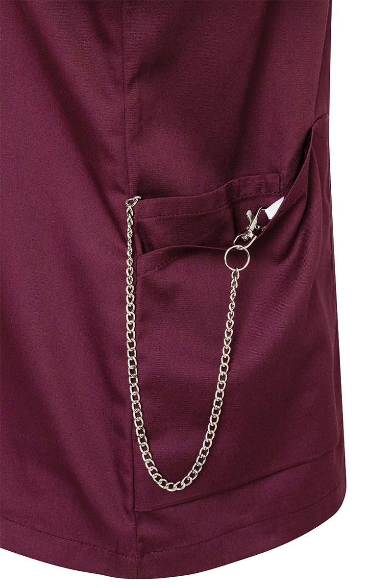 Šiek tiek įliemenuotas (MODERN / close-fit) kirpimas suteikia dailią siluetą, o universalus dizainas puikiai tinka darbui medicinos, slaugos, sveikatingumo, grožio, valymo ir kitose paslaugų srityse. Tuniką papildo dvi šoninės uždėtinės kišenės, dešinėje – paslėpta vidinė kišenė ir kilpelė raktams, taip pat kairėje pusėje esanti krūtinės kišenė su skyreliu rašikliui. Užsegimas – penkios centrinės spaudės, leidžiančios patogiai ir greitai apsivilkti.