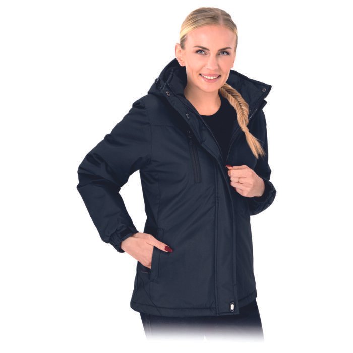 Moteriška pašiltinta apsauginė striukė, pagaminta iš PVC dengto poliesterio, užtikrinanti patikimą apsaugą nuo vėjo ir šalčio. Šiltas fliso pamušalas viršutinėje dalyje ir praktiškas nuimamas kapišonas suteikia papildomą komfortą dirbant lauko sąlygomis. Striukė funkcionali, patogi ir tinkama įvairioms darbo aplinkoms.