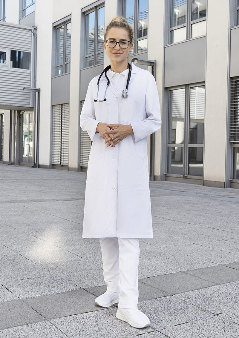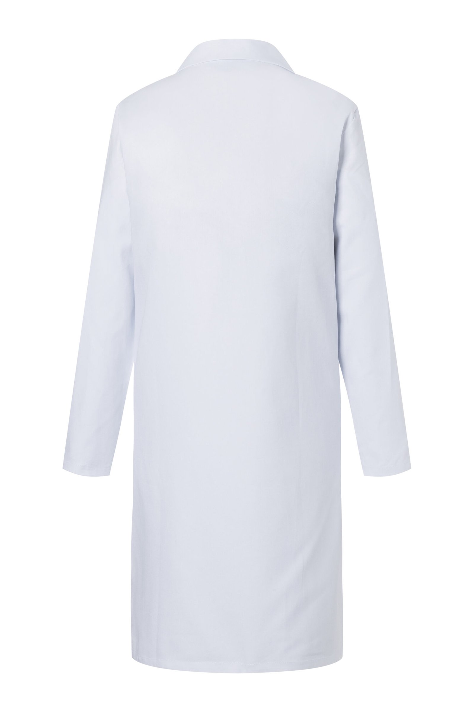 Klasikinis gydytojos ir laboratorinis chalatas iš aukštos kokybės medvilninio tvilo audinio. Laisvas kirpimas užtikrina patogumą ir judėjimo laisvę kasdienio darbo metu.