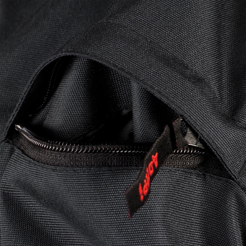 Kišenės: dvi apatinės kišenės; viena krūtinės kišenė su užtrauktuku; vidinė kišenė su užtrauktuku ir vidinė kišenė mobiliajam telefonui su lipuku