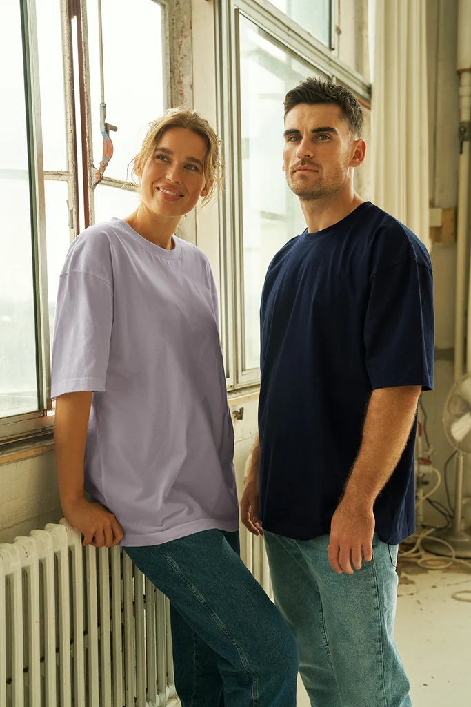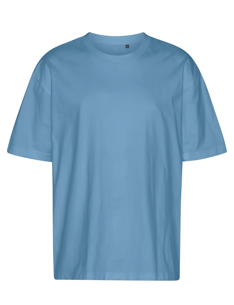 Aukštos kokybės oversize marškinėliai, pagaminti iš 100 % organinės medvilnės pereinamuoju laikotarpiu (organic cotton in conversion). Audinys – single jersey trikotažas, 220 g/m², žiediniu būdu verptas ir šukuotas, todėl marškinėliai yra minkšti, patvarūs ir malonūs odai. Laisvas oversize siluetas su nuleistais pečiais užtikrina komfortą ir modernų įvaizdį, o apvali apykaklė su elastano rumbuotomis briaunomis bei vidinė kaklo juostelė suteikia papildomo patogumo ir ilgaamžiškumo. Modelis be vidinės etiketės, todėl tinka dėvėti visą dieną be diskomforto.