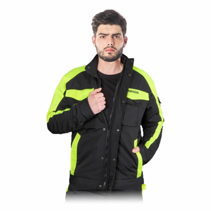 Pašiltinta apsauginė darbo striukė – praktiška ir patogi darbo striukė, skirta kasdieniam naudojimui vėsesnėmis sąlygomis. Modelis pagamintas iš tvirto poliesterio ir medvilnės audinio, užtikrinančio ilgaamžiškumą, spalvos stabilumą ir komfortą darbo metu. Šilta poliesterio pašiltinimo medžiaga padeda palaikyti optimalią kūno temperatūrą, o ergonomiškas dizainas ir daugybė funkcionalių kišenių leidžia patogiai laikyti įrankius bei asmeninius daiktus. Modernus juodos ir geltonos spalvų derinys suteikia striukei patrauklią, profesionalią išvaizdą.