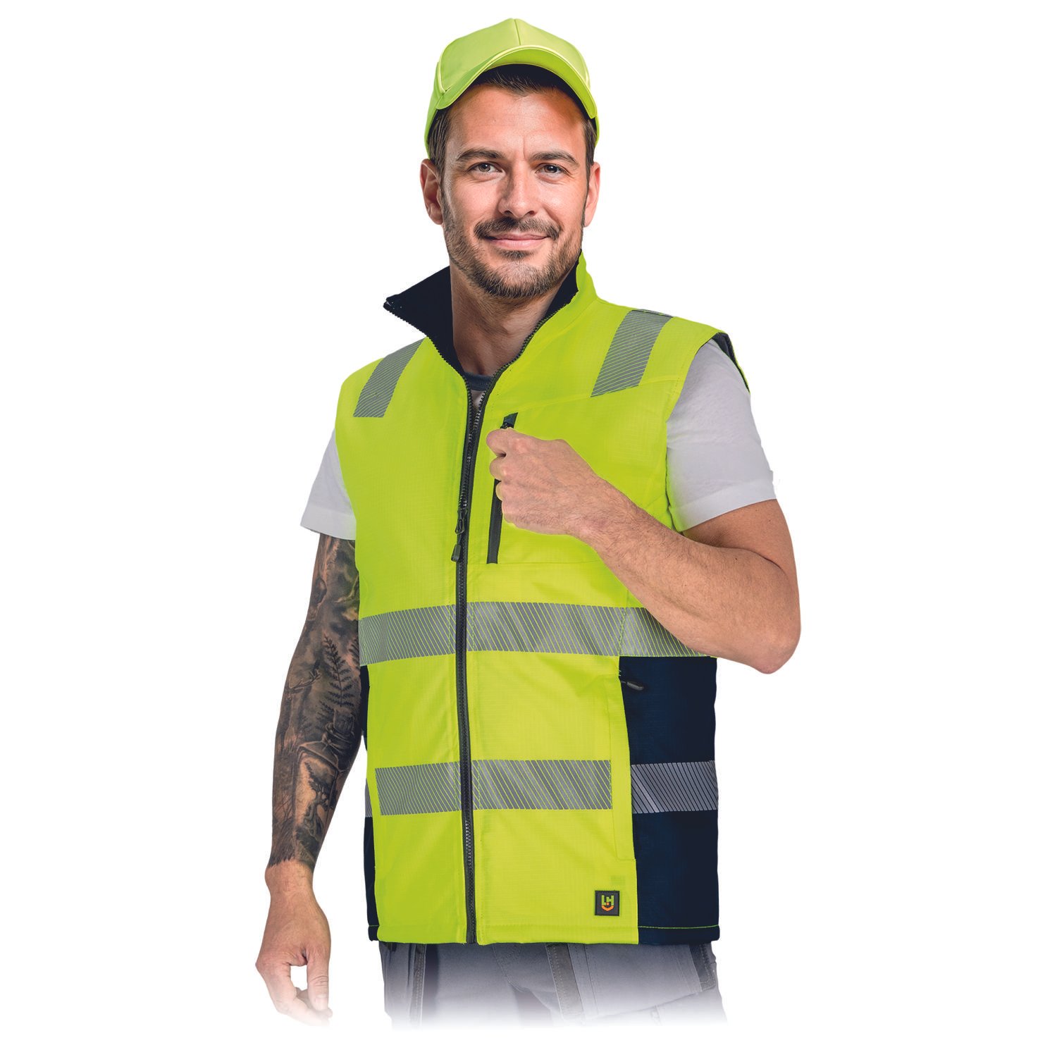 Vyriška pašiltinta apsauginė liemenė, pagaminta iš tvirto RIP-STOP audinio, kuris apsaugo nuo plyšimų ir užtikrina ilgaamžiškumą net intensyvaus darbo sąlygomis. Fluorescencinė spalva ir segmentuotos atšvaitinės juostos pagerina matomumą, todėl liemenė idealiai tinka kelių darbininkams ir kitoms viešojo saugumo tarnyboms.