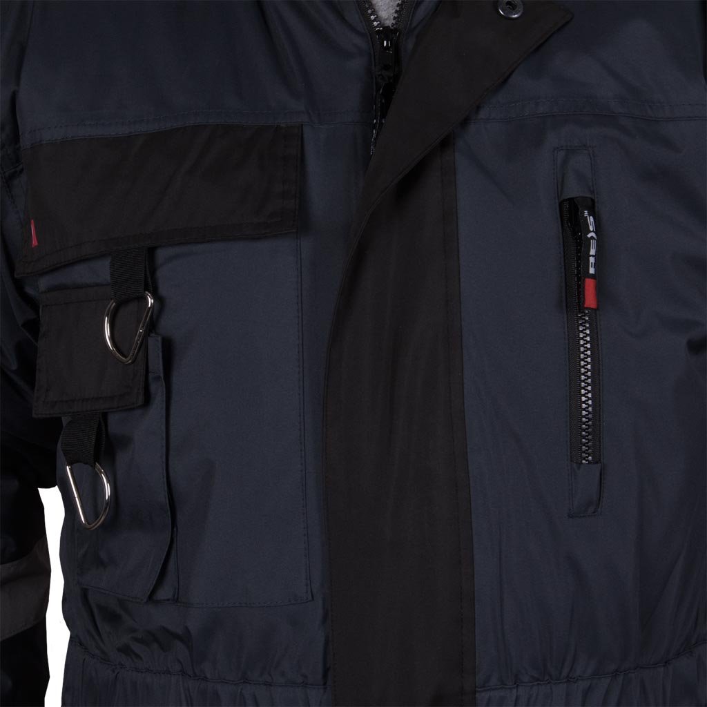 Kombinezonas užsegamas užtrauktuku su papildoma spaudžių juosta, turi reguliuojamą gobtuvą su raišteliais, tris krūtinės kišenes (dvi su „Velcro“, viena su užtrauktuku), dvi šonines ir dvi galines kišenes. Rankovės su reguliuojamais lipdukais, o vidinė guma ties juosmeniu leidžia pritaikyti prie figūros. Platėjantys kelnių galai patogiai reguliuojami, o atšvaitinės juostos ant rankovių ir kojų pagerina matomumą.