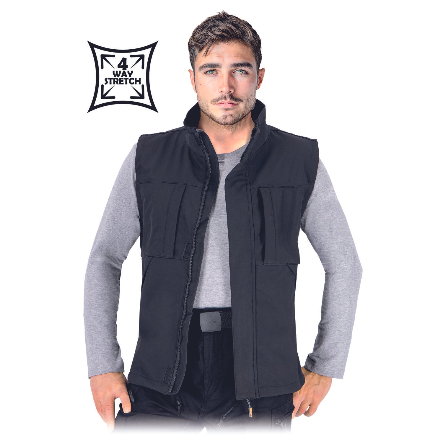 Apsauginė vyriška liemenė, pasiūta iš trijų sluoksnių softshell audinio, kuris saugo nuo vėjo ir lietaus, bet leidžia odai „kvėpuoti“. 4-way stretch medžiaga užtikrina maksimalų judesių komfortą. Liemenė užsegama užtrauktuku su papildomu Velcro, turi reguliuojamą stovinčią apykaklę ir keturias užtraukiamas kišenes. Nugaroje apačia baigta tampria juosta patogesniam prigludimui.