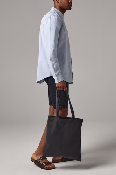Perdirbtų medžiagų maišelis – tvarus ir patvarus daugkartinis maišelis, pagamintas iš GRS sertifikuotų perdirbtų medžiagų mišinio. Tvirtas 270 g/m² audinys užtikrina ilgaamžiškumą, o ilgos rankenos leidžia patogiai nešioti tiek rankoje, tiek ant peties. Juodos spalvos modelis dažomas vienkartinio dažymo metodu, kuris mažina poveikį aplinkai ir suteikia kiekvienam gaminiui išskirtinį, lengvai „skalbtą“ efektą.