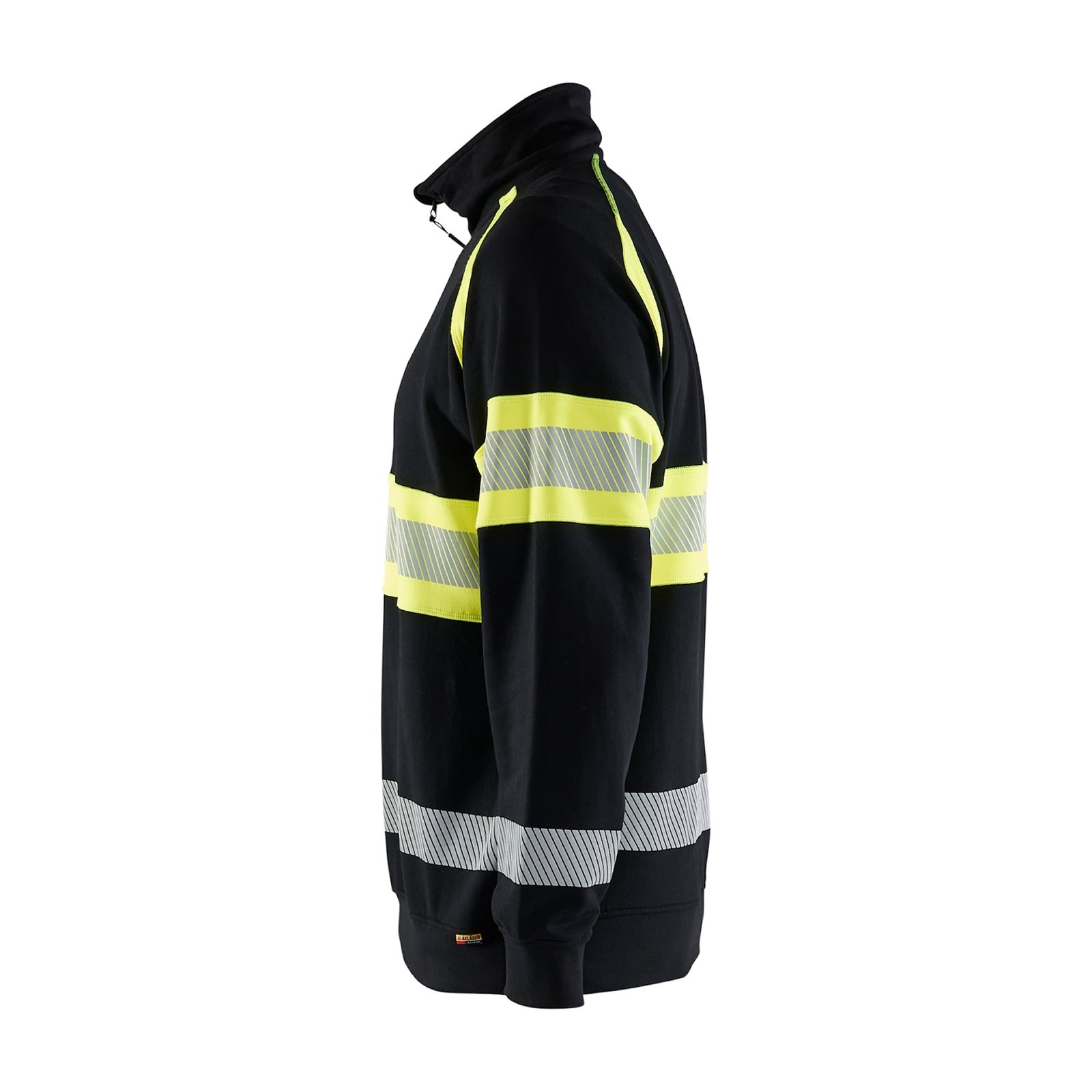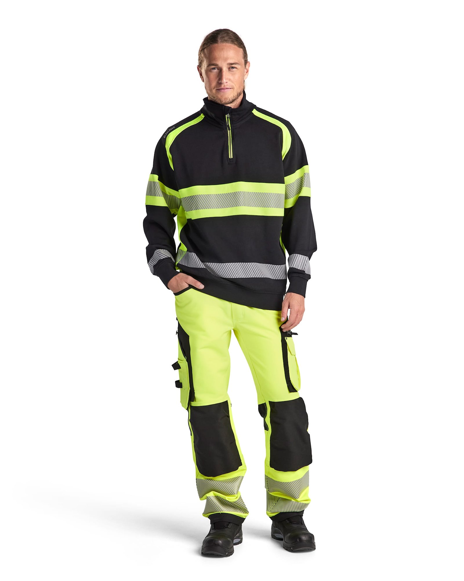 Signalinis darbo džemperis – minkštas ir patogus aukšto matomumo džemperis, užtikrinantis komfortą bei saugumą darbo metu. Iškirptos 50 mm pločio atšvaitinės juostos suteikia geresnį tamprumą ir oro pralaidumą, todėl drabužis nevaržo judesių. Aukšta apykaklė su pusiniu užtrauktuku ir tamprūs rankogaliai bei apačia padidina dėvėjimo komfortą. Tamsi džemperio dalis pagaminta iš 100 % medvilnės, o fluorescencinė dalis – iš 100 % poliesterio.