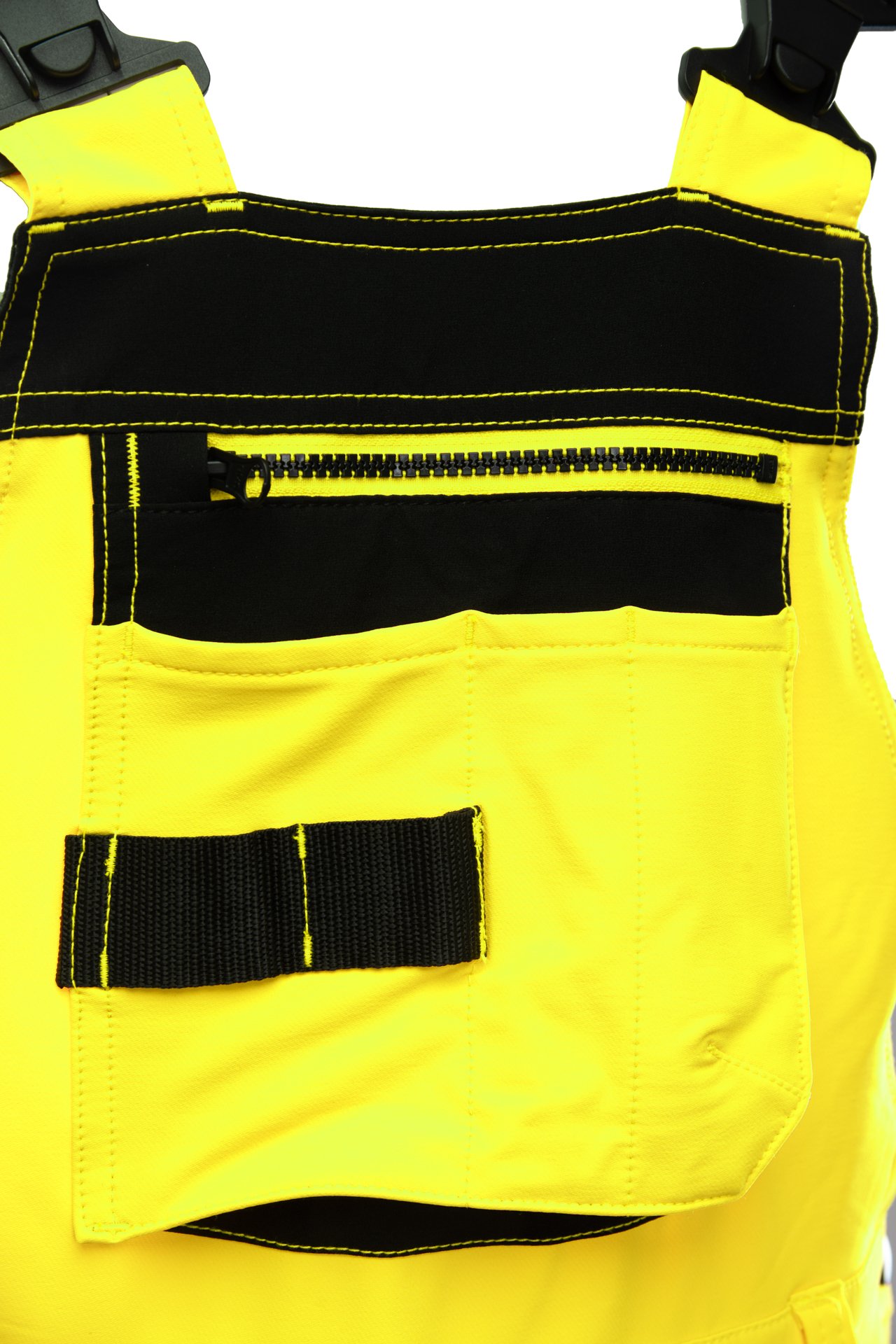 Signalinis darbo puskombinezonis – modernus, elastingas ir patikimas darbo drabužis, skirtas darbui aplinkoje, kur būtinas padidintas matomumas ir judėjimo laisvė. Puskombinezonis pagamintas iš aukštos kokybės 4 krypčių tamprumo poliesterio ir elastano audinio, kuris užtikrina komfortą, ilgaamžiškumą bei spalvos ir dydžio stabilumą net po daugkartinio skalbimo. Tvirta konstrukcija su dvigubomis siūlėmis ir sustiprintomis vietomis garantuoja atsparumą intensyviam naudojimui, o plataus pločio „FLEX-PRO“ atšvaitinės juostos pagerina matomumą prasto apšvietimo sąlygomis.