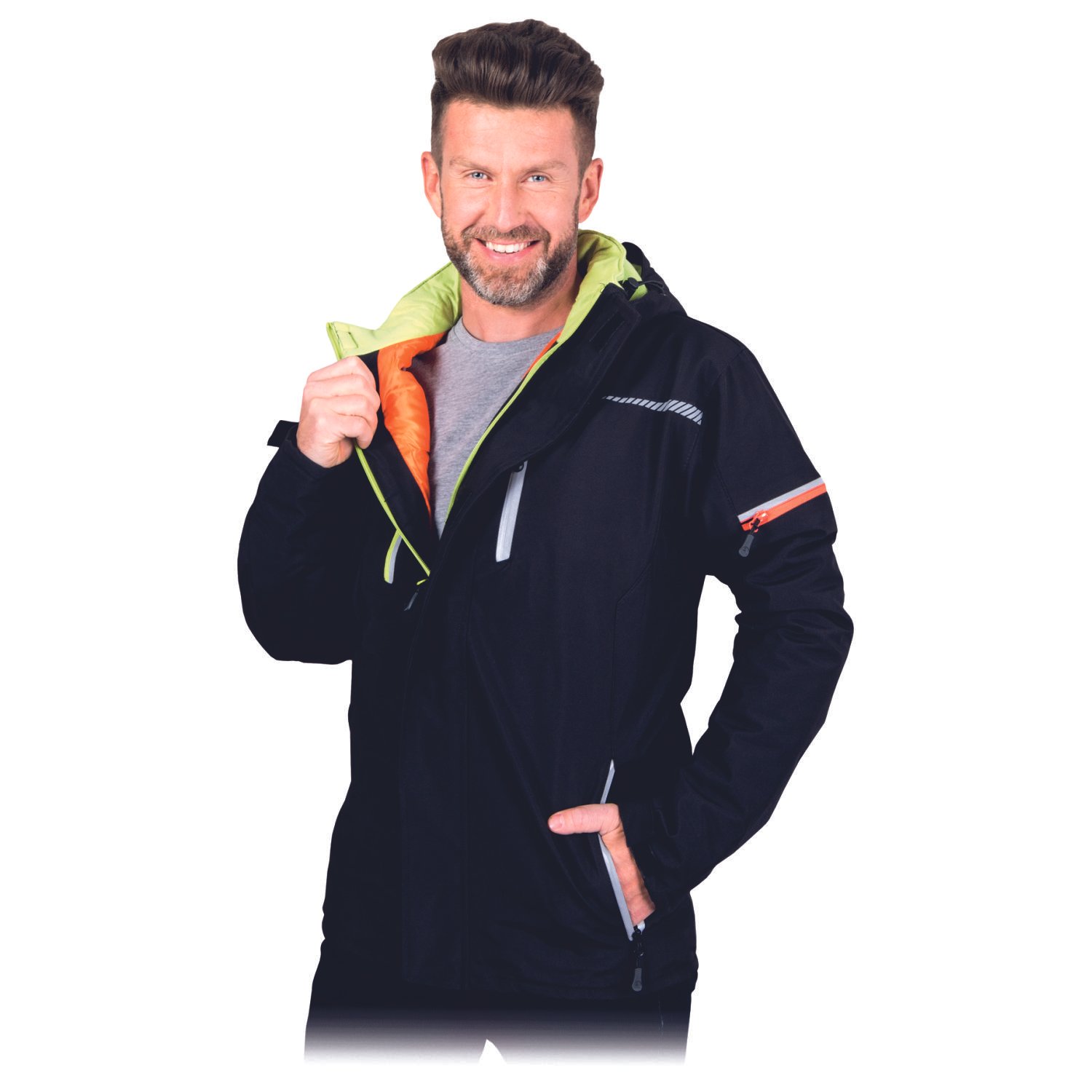 Vyriška pašiltinta apsauginė striukė, pagaminta iš tvirto poliesterio audinio, užtikrinanti patikimą apsaugą nuo šalčio ir vėjo. Patogus gobtuvas, daug funkcionalių kišenių ir atšvaitiniai elementai suteikia komfortą bei saugumą dirbant lauko sąlygomis.