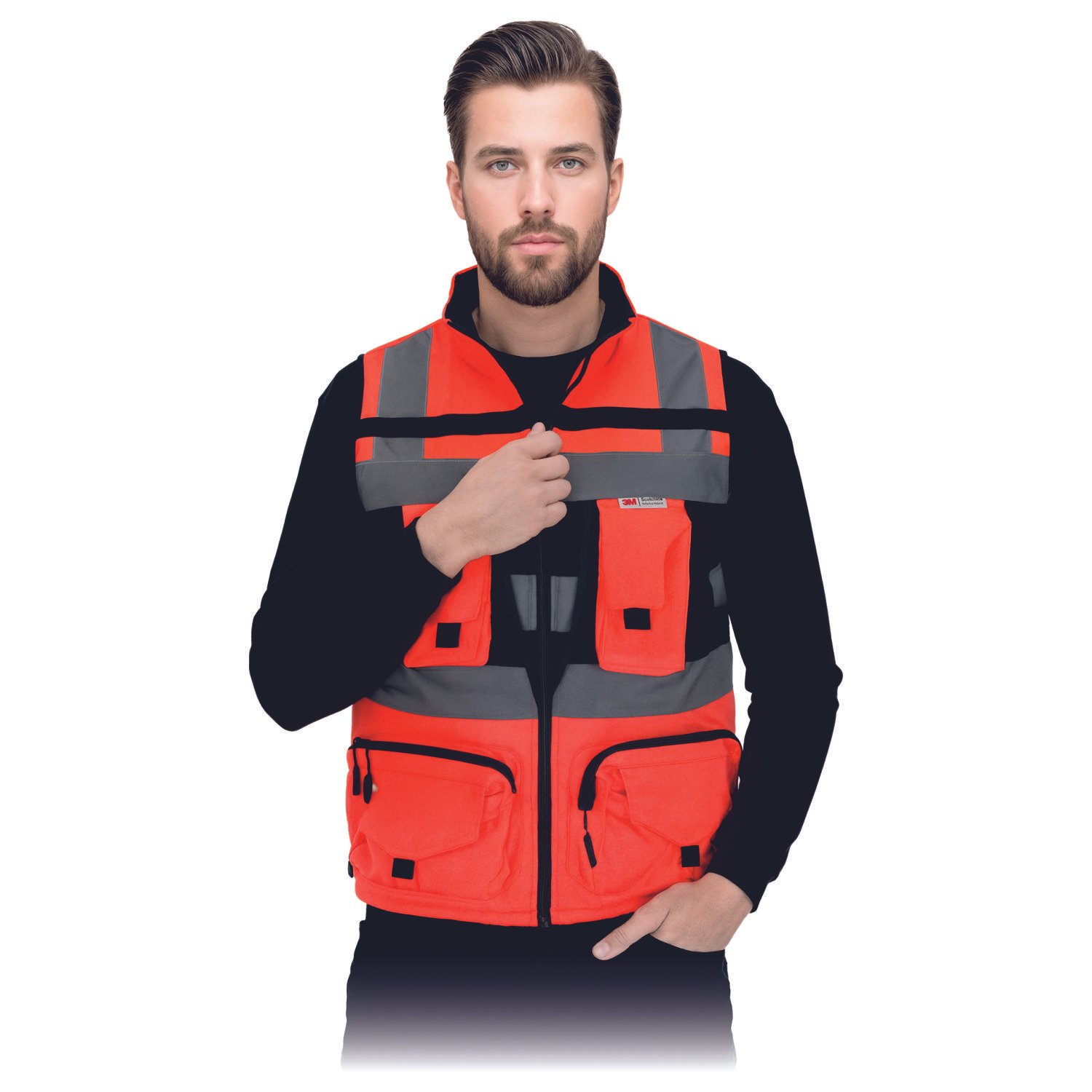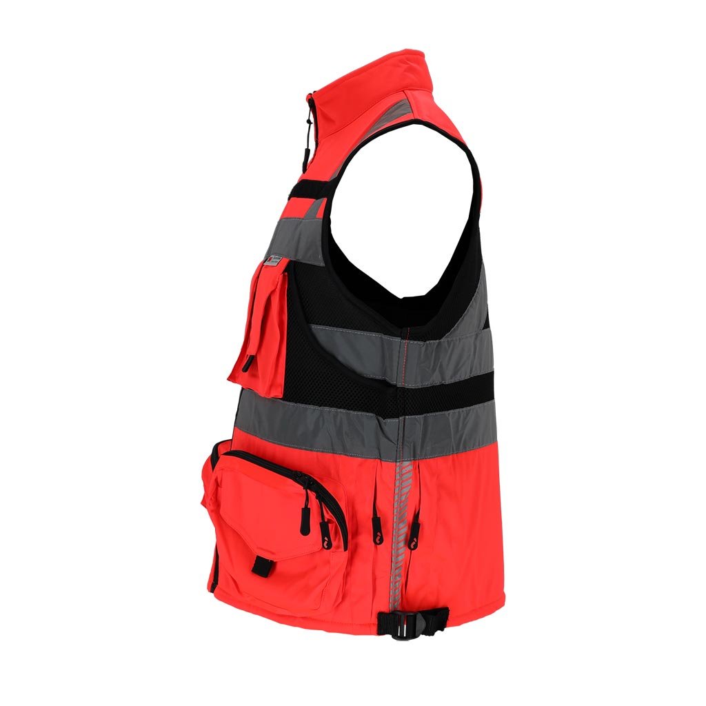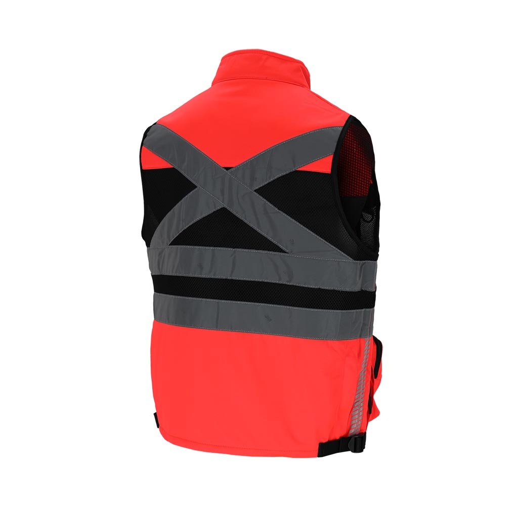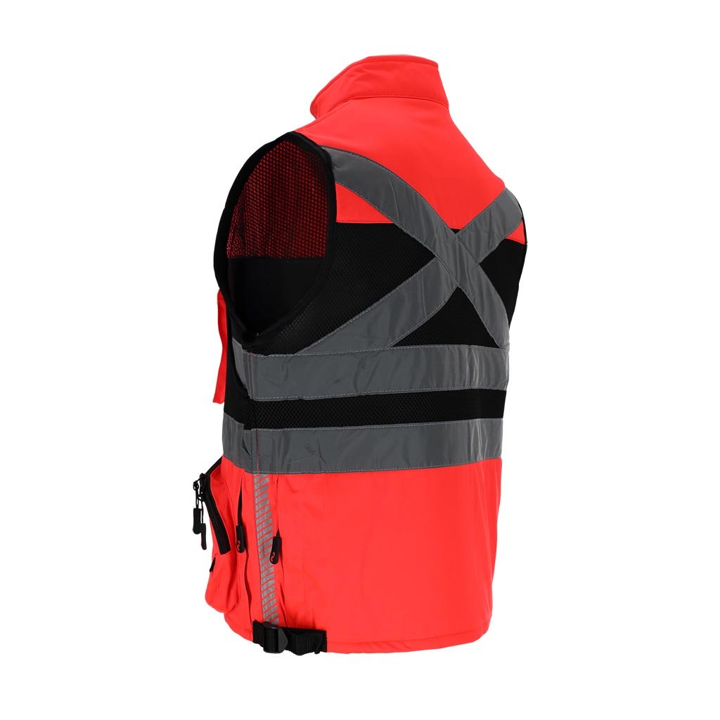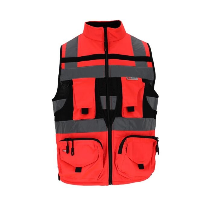 Vyriška įspėjamoji liemenė, pasiūta iš lengvo ir patvaraus poliesterio, užtikrinanti puikų matomumą dėl fluorescencinio audinio ir 3M Scotchlite atšvaitinių juostų. Praktinis kišenių išdėstymas ir reguliuojamas liemens plotis suteikia patogumą įvairioms darbo sąlygoms. Idealiai tinka kelių darbininkams ir kitoms viešojo saugumo tarnyboms.