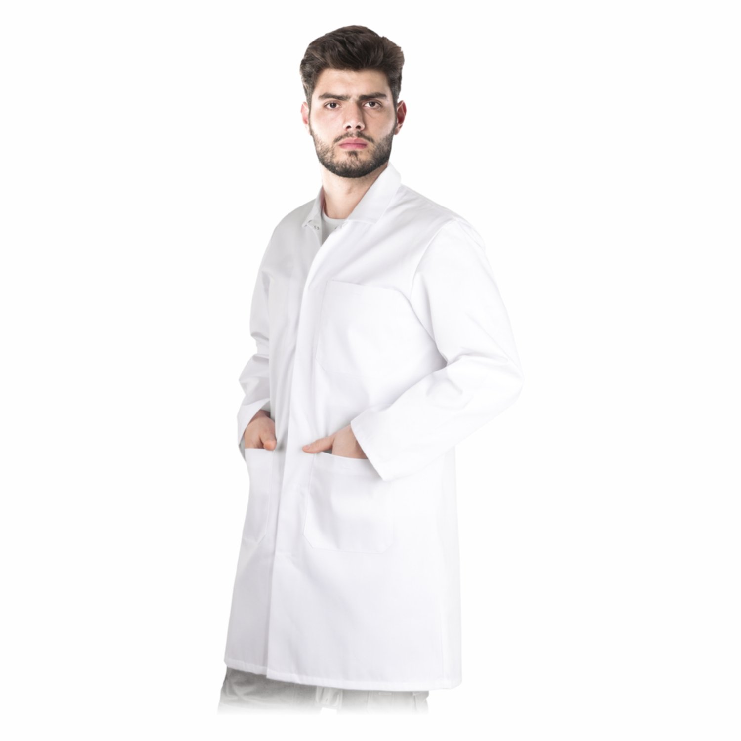Apsauginis darbo chalatas vyrams – funkcionalus ir patogus chalatas, skirtas darbui aplinkoje, kur svarbi higiena, švara ir patikima apsauga. Pagamintas iš poliesterio ir medvilnės audinio, chalatas yra patvarus, lengvai prižiūrimas ir tinkamas intensyviam naudojimui. Klasikinė apykaklė, patogus užsegimas spaudėmis ir praktiškas kišenių išdėstymas užtikrina komfortą bei funkcionalumą kasdienio darbo metu. Idealiai tinka laboratorijoms, taip pat kosmetikos, medicinos ir chemijos pramonei.