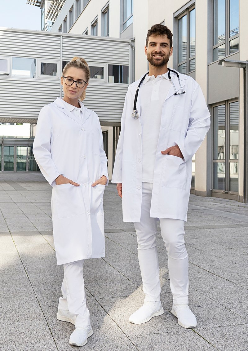 Klasikinis gydytojo ir laboratorinis chalatas vyrams, pasiūtas iš aukštos kokybės tvilo audinio. Laisvas kirpimas užtikrina komfortą ir judėjimo laisvę kasdienio darbo metu.