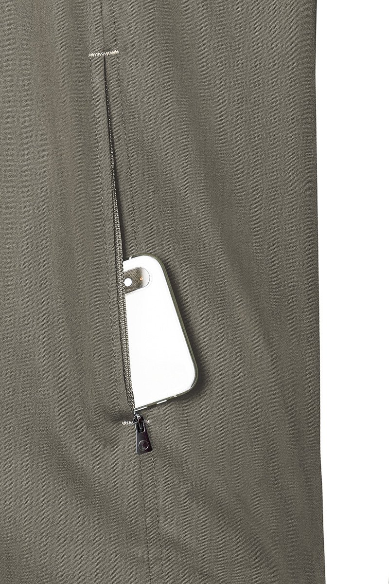 Švarkas lengvai priglunda dėl modernios, šiek tiek įliemenuotos formos. Užsegamas spaudėmis, todėl greitai ir patogiai apsivelkamas. Priekyje yra užtrauktuku užsegamos kišenės, o ant kairės rankovės — siaura įleistinė kišenėlė smulkioms priemonėms. Kontrastiniai juostelių akcentai rankovėse ir ties kaklu suteikia išskirtinį, šiuolaikišką įvaizdį.