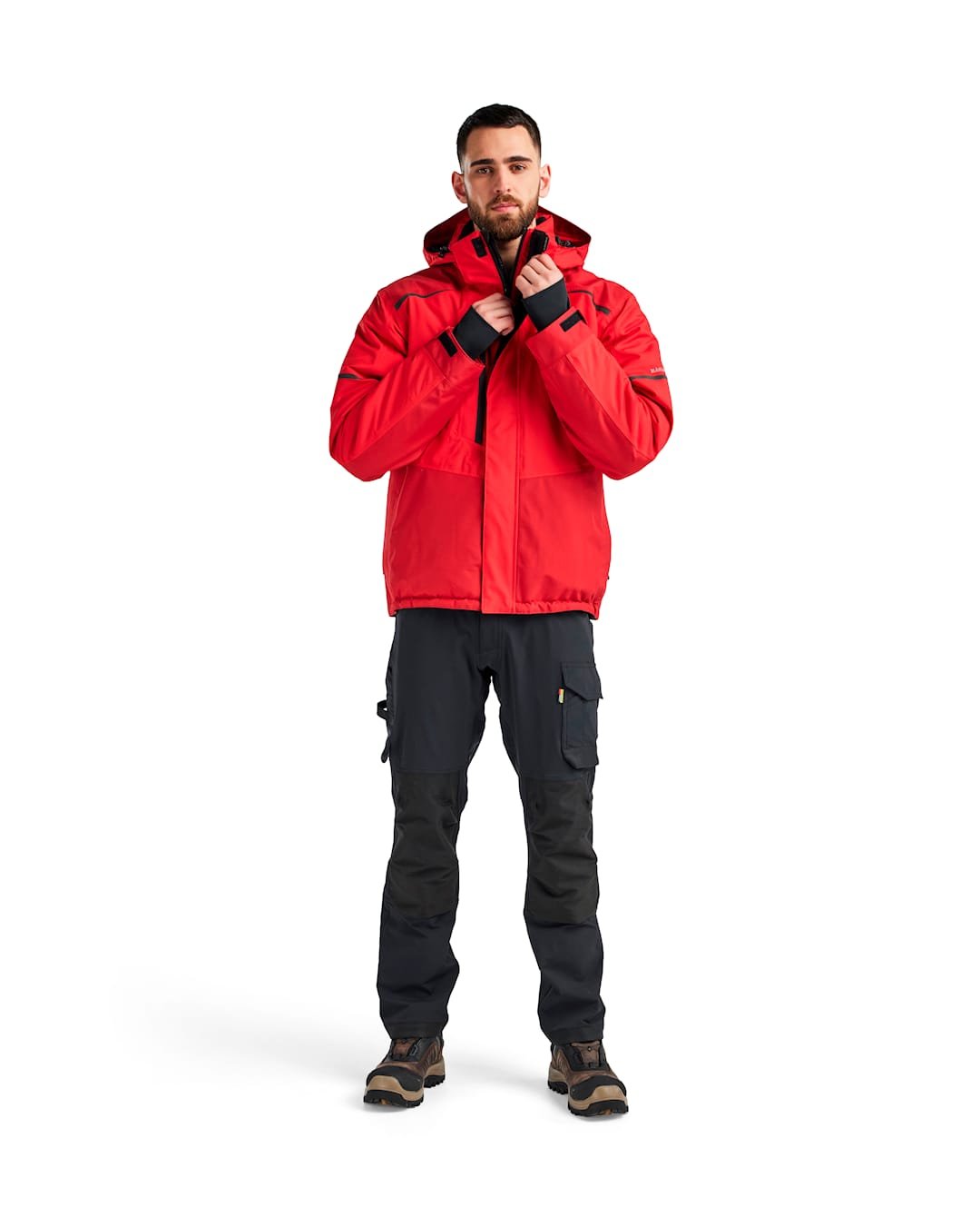Apsauginė žieminė darbo striukė – itin funkcionali, vėjui ir vandeniui atspari striukė, skirta darbui šaltomis ir nepalankiomis oro sąlygomis. Klijuotos siūlės patikimai saugo nuo drėgmės, o kvėpuojantis audinys ir tinkleliniai įsiuvai didžiausio prakaitavimo zonose efektyviai pašalina drėgmę nuo kūno. Flisu pamušta apykaklė, dygsniuotas pamušalas ir reguliuojamas, nuimamas gobtuvas užtikrina šilumą bei komfortą žiemos metu. Diskretiškos atšvaitinės detalės priekyje, nugaroje, ant rankovių ir gobtuvo pagerina matomumą, o apgalvotas kišenių išdėstymas leidžia patogiai laikyti darbo priemones.